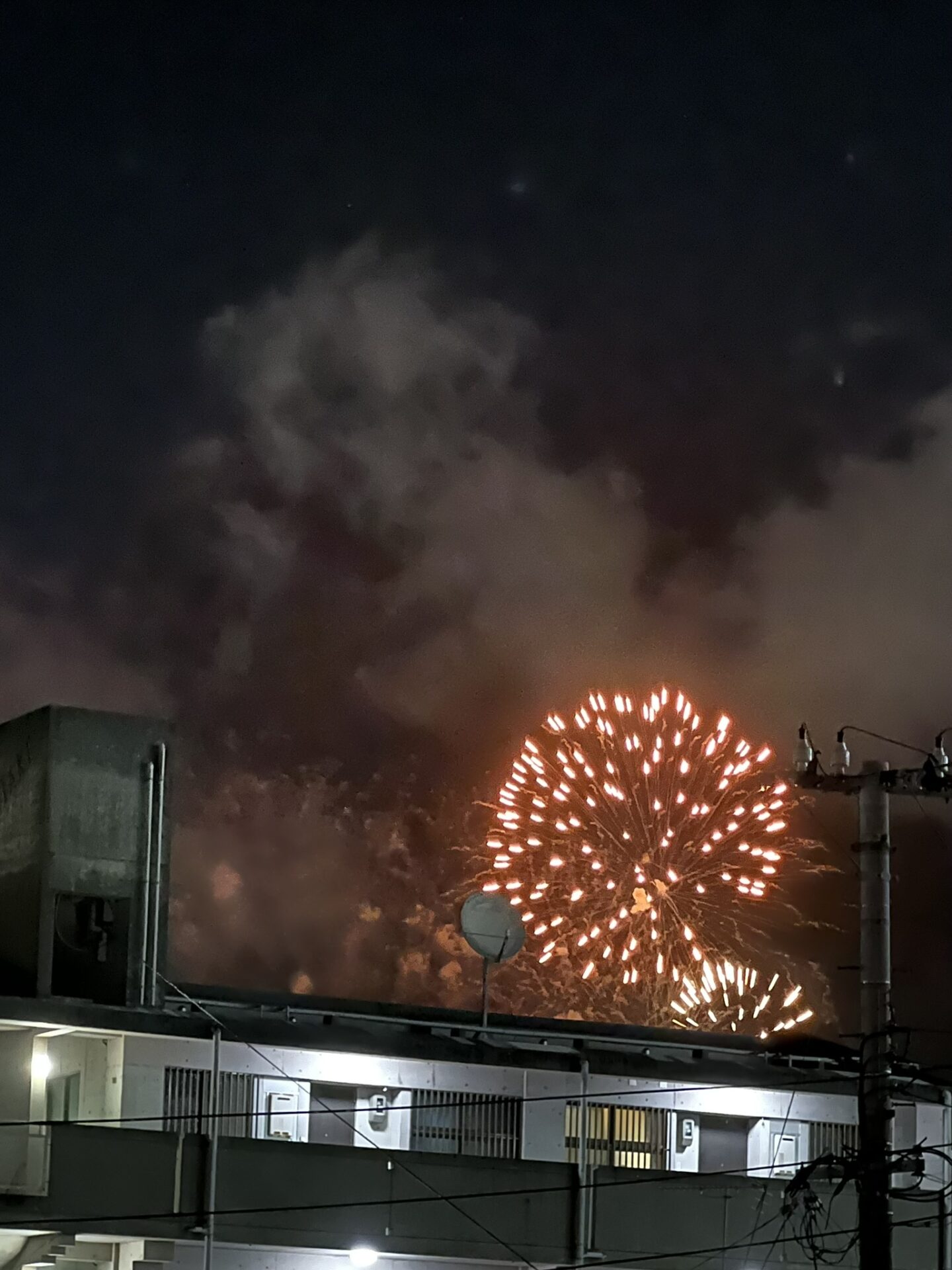 移住後・3度目の花火!! 生活 X Facebook LINE コピー 2025.10.20 沖縄移住2年3か月!! てだこ祭りの花火・今年もベランダからきれいに見えました!! お隣の方々も皆さんベランダに出て楽しんで居られる様子😃😃 何となく心がウキウキ😊!(^^)!