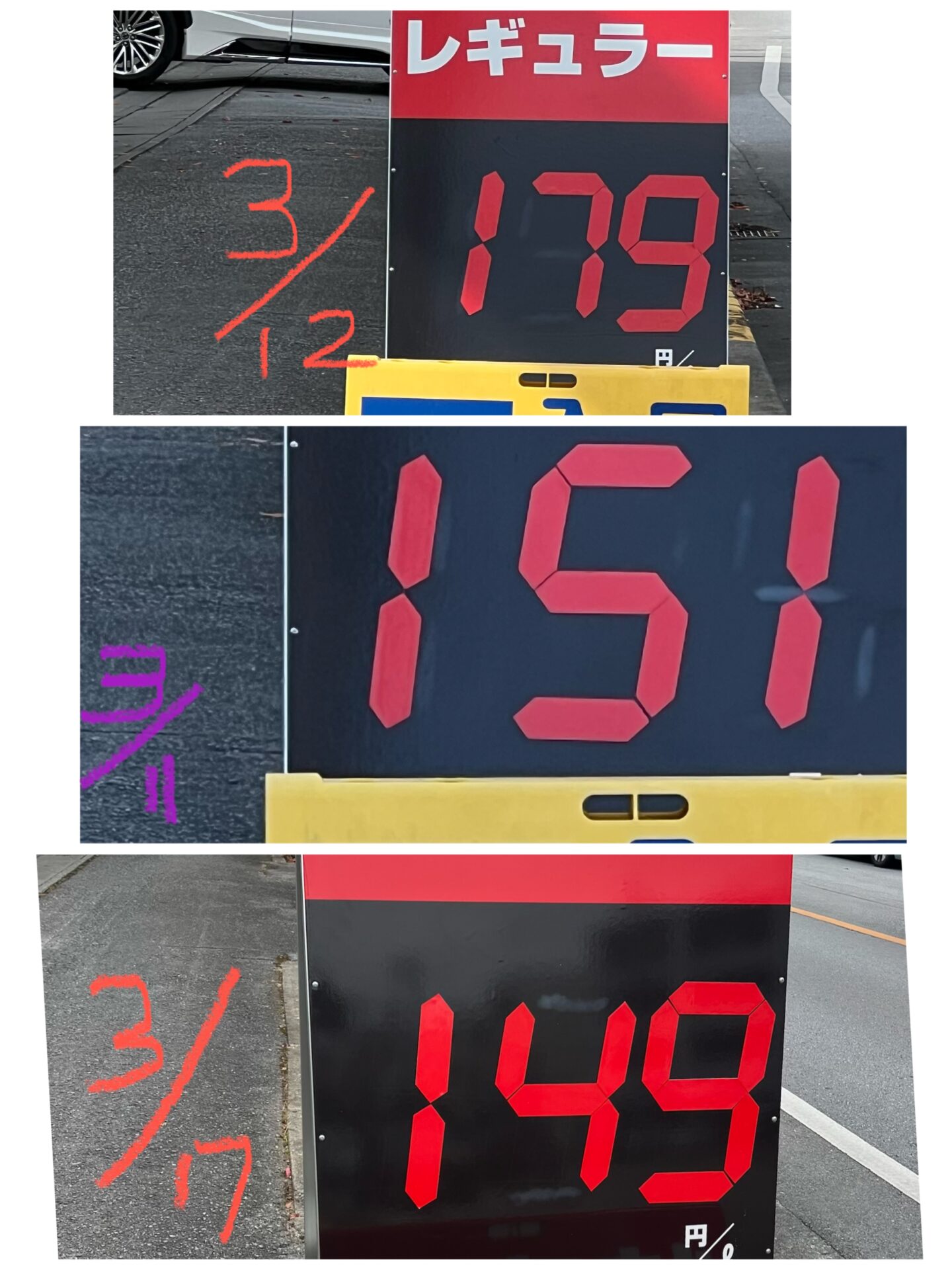 ガソリンが短い間にこんなにも高騰!!!!!!!