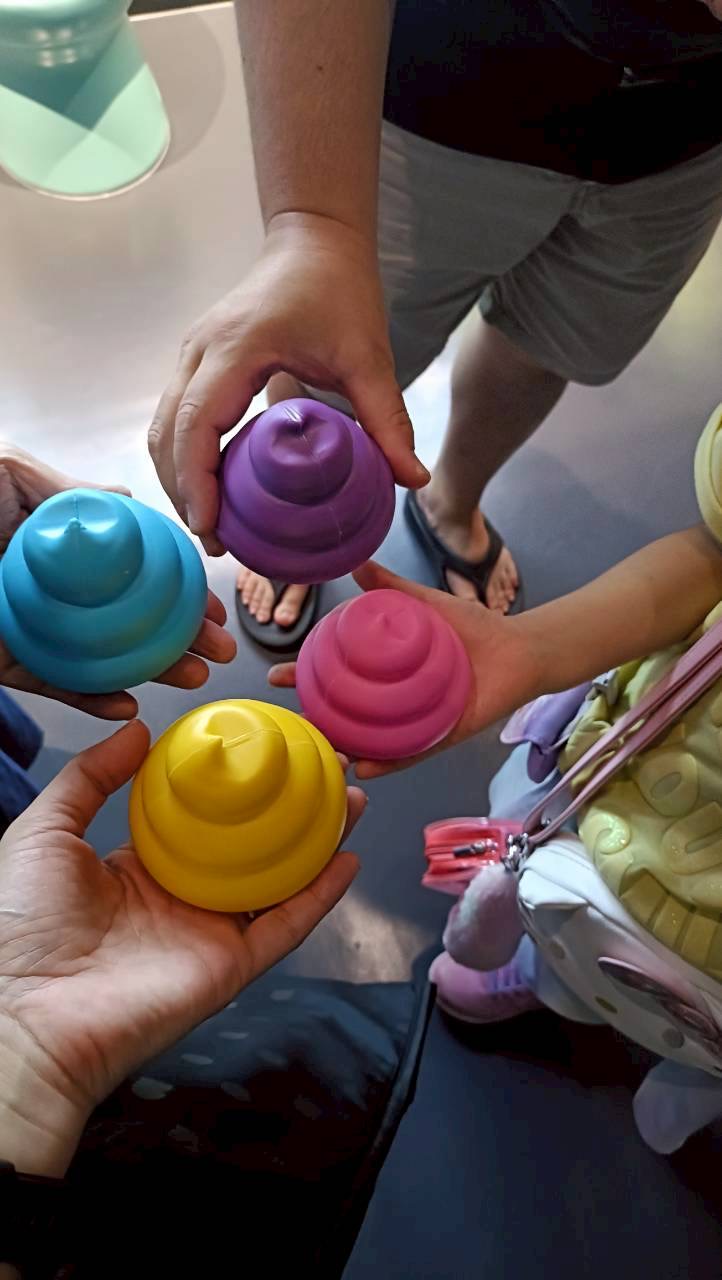 ようやく入ると、色とりどりの便器が並び、そこに座って踏ん張ると自分用の可愛い